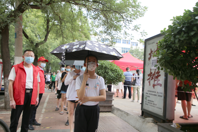 “请大家带好口罩,保持安全距离。”15时许,在位于经五路中原古玩城的广场前,来自省科协的志愿者们已经按照安排各自就位,顶着炎炎烈日在现场积极维护秩序,对现场群众进行引导、讲解核酸检测流程,帮助老年群体完成注册登记。周到细致温馨的志愿服务既让检测群众暖心,又提高了检测效率。