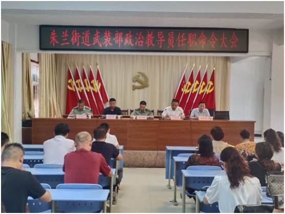 近日,舞钢市朱兰街道召开武装部政治指导员任职命令大会,市人武部政委陶少琳出席会议,会议由办事处主任刘文杰主持。