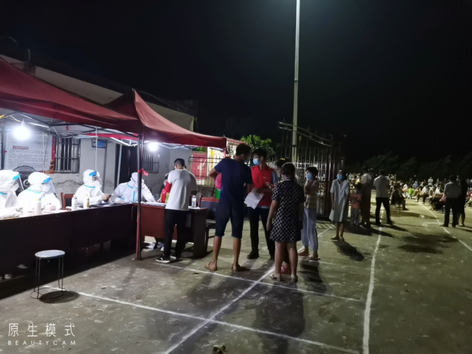 期间,镇领导顶风冒雨,日夜兼程,多次深入到检测现场指导工作,看望慰问在现场辛勤工作的医护人员、党员干部,并感谢群众的配合。身穿红马甲的志愿者忘我工作,耐心讲解,真情督导,用行动书写着对党的忠诚和热爱,努力为铜钟镇疫情防控工作而贡献微薄之力。
