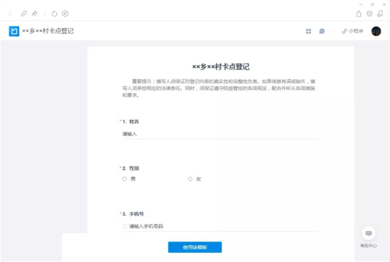 邀你使用表单模板「××乡××村卡点登记」