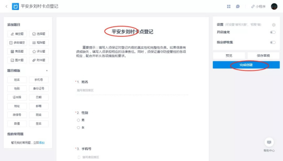 点击进入这个新的表单,还像刚才一样修改卡点名称,然后完成创建并分享就可以了。这样依次为每个卡点都创建一个单独的表单和二维码。