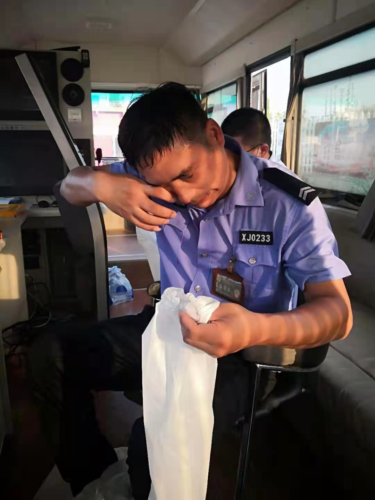 【战“疫”先锋3:“汗渍”民警刘海伟烈日下手臂被晒“脱”一层皮】入秋后,烈日炙烤着大地,站立在阳光下,路面温度接近40度,热得有些窒息。在商南高速公路商丘梁园收费站,十中队中队长刘海伟依然身体挺得笔直,每一个动作都做得刚劲有力、标准到位,任由汗水顺着脸颊、顺着肌肤滑落,流落的汗珠折射出太阳的光芒,也折射出了他们对工作的那份热情。警服的肩部、臂部位置,汗水已经“结晶”,变成了一条白色的盐渍,手臂的皮肤日晒脱皮,留下斑斑驳痕。刘海伟和同事每隔2天,日夜24小时全天轮岗坚守收费站前的疫情防控检查站,对上下站的车辆尤其是对中高风险区域车辆,逢车必检,逢人必查,配合医护人员做好信息登记、车辆劝返、体温检测、核酸检测证明和疫情行程码,筑牢疫情防控进入商丘“第一道”防线。8月8日上午12时30分许,刘海伟在引导一个宁陵赵村籍的司机王某扫码时,看到他脸色发白。询问得知,王某患有低血糖病症,为了赶路没有顾上上吃早饭。为防意外,刘海伟端来原本自己要吃的泡面让其充饥。王某对刘海伟的举动感慨不已,临走之时,专门鞠躬致谢。