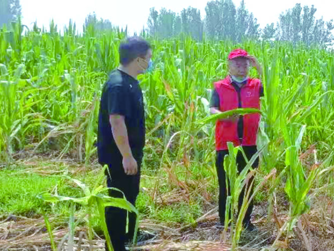 湛河区曹镇乡素有“鹰城小江南”之称,地下水位偏高,容易引起涝害,今年的集中暴雨导致该区玉米出现大面积倒伏。看着被洪水浸泡的庄稼,“黑老秦”的心被深深刺痛。“天灾不可拍,挽救是关键。”他同其他农业技术人员迅速行动,一方面配合组织人员迅速进行灾害调查,统计上报灾情;另一方面积极对群众进行科普宣传,号召群众开展自救,按照玉米田受灾状况采取相应措施:能够排涝的田地,迅速挖沟排水,及时进行叶面营养补充,最大限度挽回水灾损失。对于作物已被淹死的农田,及时清理田间植株和杂草,墒情合适时翻耕整地,播种生长期短、适应生产的蔬菜、小杂粮等适种作物。