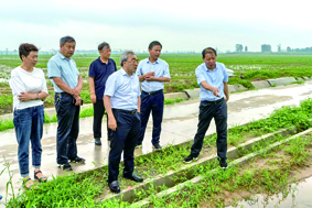 中国工程院院士、省农科院院长张新友(前排左)带领团队指导灾后生产。