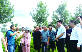 中国工程院院士、省农科院院长张新友(前排)在试验田调研。