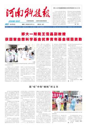 20210824 郑大一附院王雪晶副教授 获国家自然科学基金优秀青年基金项目资助