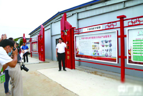 师鹏飞(右一)在介绍食用菌现代农业产业园。(资料图片)