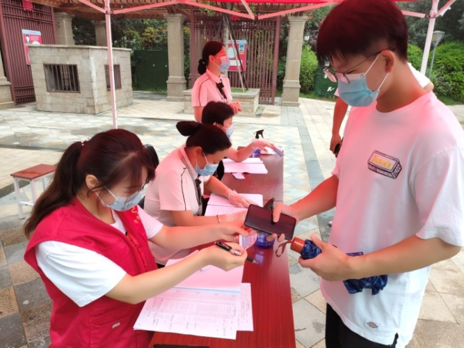 府前社区党群服务中心位于睢阳区新城国际小区内,负责新城国际及周边若干小区的疫情防控工作。8月1日,商丘出现一例新冠确诊病例;8月13日,商丘新增本土确诊病例2例,商丘全市进入疫情防控全面戒备状态。
