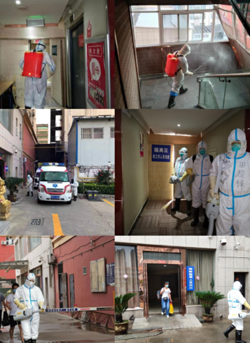 隔离房间的终末消毒,转接和解除隔离人员楼道房间的消杀规范到位,为工作人员和隔离人员提供安全的工作环境和隔离区域。他们就像一只只勤劳的蜜蜂,准时出现在各消杀区域。