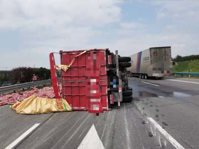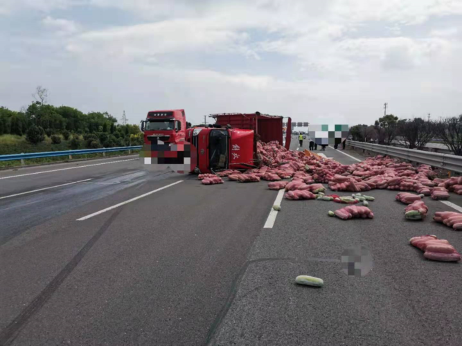 8月27日13时许,外地轿车司机李某驾车正常行驶到京港澳高704公里东半幅时,因其任性变道的一个小动作,造成其后方一辆轻型货车避让不及,两车在发生剐蹭后致轻型货车侧翻,轻型货车上运载的蔬菜倾泻而出,散落在高速公路的第一、二车道内,狼藉一片,严重影响了其他车辆的行车安全。