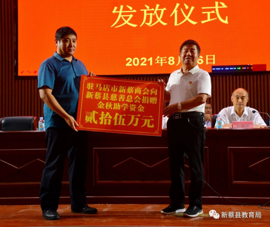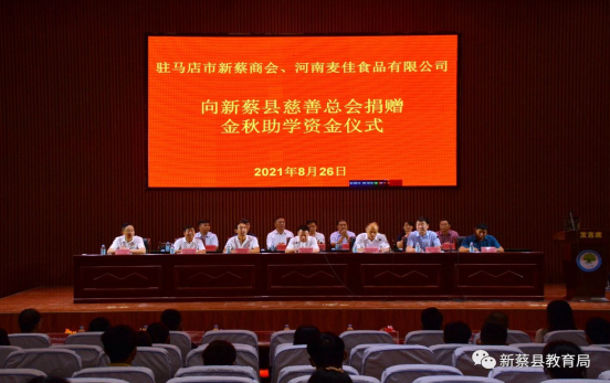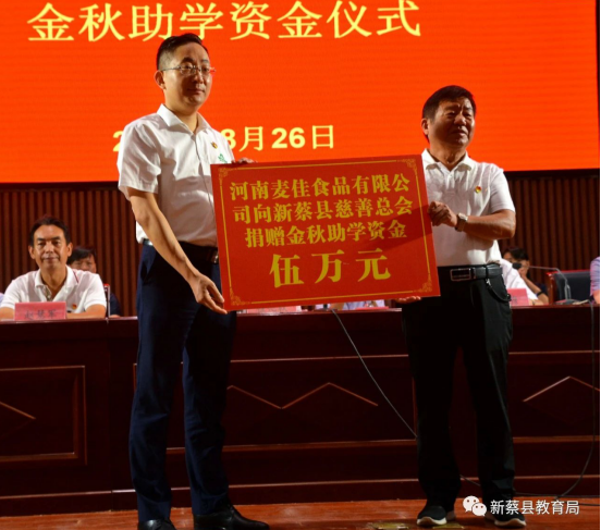 驻马店市新蔡商会、河南麦佳食品有限公司捐赠助学金暨新蔡县慈善总会“金秋助学”捐助仪式举行