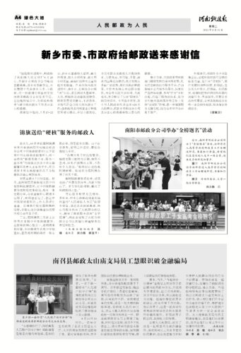 20210831 新乡市委、市政府给邮政送来感谢信