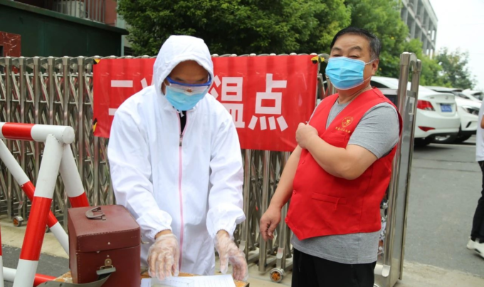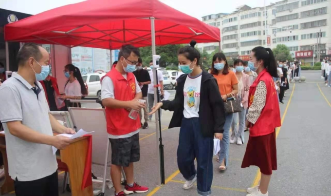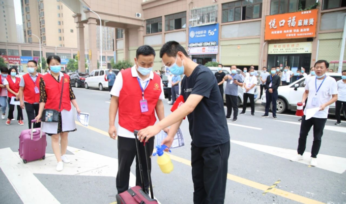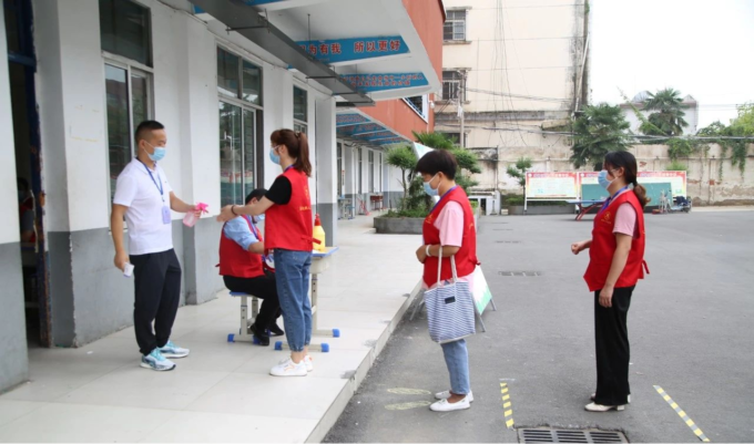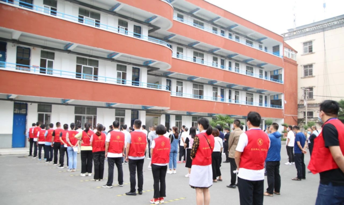 8月28日,新蔡县月亮湾中学举行了疫情防控开学演练活动。演练中,按照“一院一校”工作部署,十里铺卫生院派出医务人员到现场进行具体指导。演练现场,教师志愿者按照分工,各司其职,在医务人员的指导下,有序开展各项工作。收集学生开学前14天体温登记表、对入校师生进行体温测量、对学生行李物品进行消毒、入校登记,等等,演练人员戴好口罩,间隔一米,有序前行,身穿防护服的负责教师则在旁边随时待命。“学生”进入校园,在班级门口、寝室门口和餐厅门口,也都有相应的负责小组进行检查和接应。按照演练程序,各流程环环相扣,依次进行,整个演练过程组织严密、分工明确、紧张有序,活动取得圆满成功。