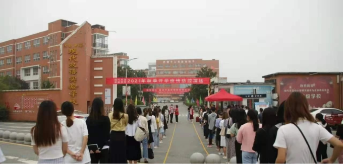 为提高全校师生防疫抗疫意识,熟悉并掌握学校日常防疫工作流程,确保平安开学、开学平安,8月29日上午,新蔡县现代双语学校举行了秋季开学疫情防控应急演练活动。为确保演练真正贴近实际、做到有备无患,学校提前召开了疫情防控演练准备工作会议,对演练活动进行安排部署,明确演练时间、地点、人员、演练内容及流程,实施岗位分工,确保责任到人,重点围绕错峰返校、清洁消毒、宿舍防控、食堂管理、应急处置等多项防控重点内容进行强调。演练正式开始后,教师志愿者分别对入校人员进行测温、消毒、各场景体温异常处理(入校前、课堂、食堂就餐、宿舍)进行模拟演练,对开学后的各个环节以及处理突发事件时的工作流程进行了实际操作。