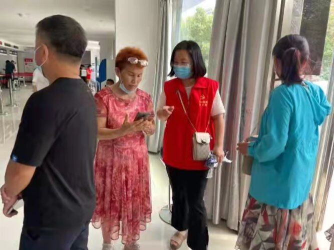 三是冲锋在前,开展志愿服务,助力核酸检测。抽调志愿者到市医院和社区核酸检测点,面对高温天气,志愿者们不怕苦累,身着红马甲,维护现场秩序,加快检测进度,协助登记信息、疏导人流、维护秩序,详细给群众做好解释说明工作以及如何扫码注册检测信息系统,全力保障检测工作有序开展。