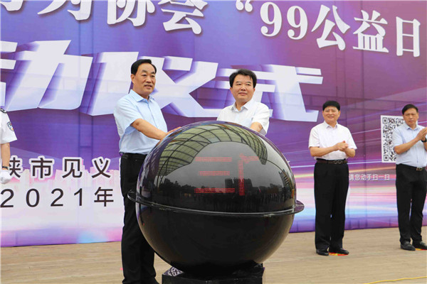 省人大原副主任、省见义勇为基金会理事长段喜中,三门峡市委常委、政法委书记李长治共同开启三门峡市见义勇为协会“99公益日”启动仪式球