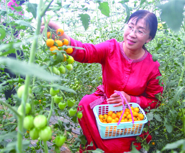 9月3日,在南阳市邓州市张村镇盛达智慧农业示范园,游客在智能温室大棚内采摘小番茄。据介绍,邓州市盛达智慧农业示范园原是南水北调中线工程取土区,经过治理,如今变身为一个占地2300余亩、一二三产业融合发展的现代农业示范园。
