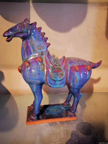 多年来,张玉玺始终秉承手拉坯成型、小炭窑烧制的传统工艺,其作品造型古朴、端庄、大气,釉质浑厚、含蓄沉稳,胎质细腻坚实,釉色斑斓莹润,气质雍容高雅,给人朴实、庄重之感,尤其作品釉面以蓝红、紫、绿、金、银、铜色晶斑,有的如簇簇山花竞相开放,有的似片片雪花晶莹剔透,银星斑点像蔚蓝色的夜空群星闪烁,金星斑点似冶炉中金星飞溅……纹路千姿百态,秞画意境无穷,别具特色。