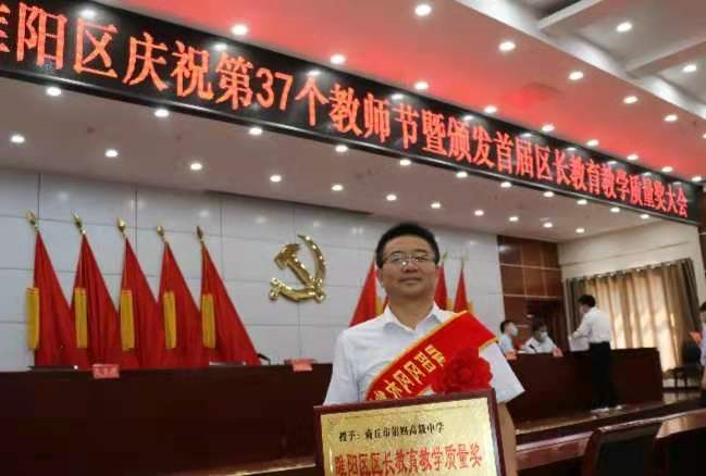 为进一步激发全区广大教育工作者教书育人的荣誉感、责任感和使命感,9月10日上午,睢阳区召开庆祝第37个教师节暨颁发首届区长教育教学质量奖大会,表彰辛勤耕耘在睢阳区教育教学一线的优秀教师、优秀班主任、优秀教育工作者和师德标兵,并颁发首届区长教育教学质量奖。商丘市四高荣获首届区长教育教学质量奖。