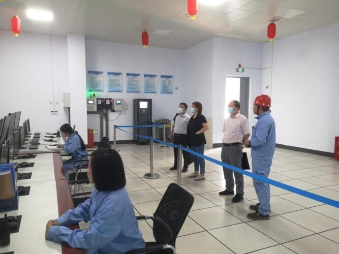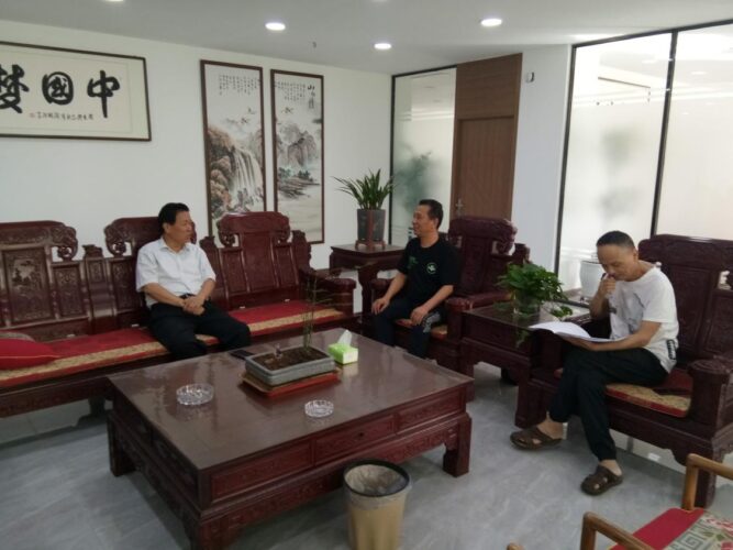 鹤壁市科协副主席李伟(右二)带队到鹤山区姬家山化工园区鹤壁郑氏化工有限公司、鹤壁全丰生物科技有限公司等进行走访调研