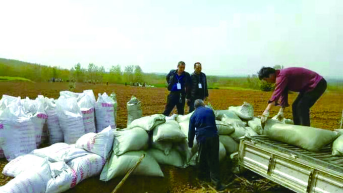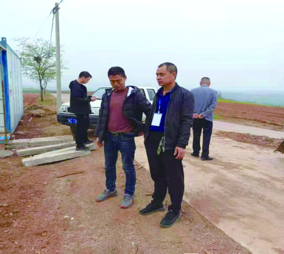 刘要辰(前右)对合作社红薯生产进行调研。(资料图片)