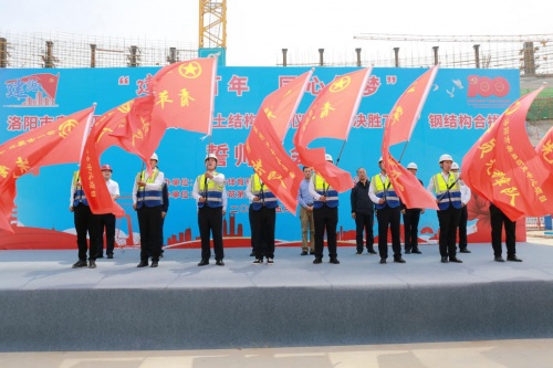 随后,洛阳市委常委、常务副市长王琰君宣布洛阳奥林匹克中心主场馆混凝土结构开始封顶浇筑,完成后,与会领导向党员先锋队、工人先锋队、青年突击队授旗,这也标志着项目向7月30日钢结构合拢正式发起冲刺。