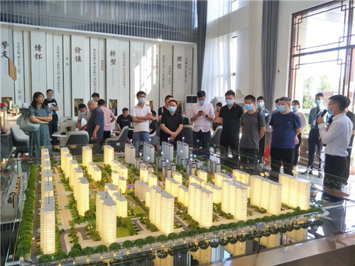 下午4点半,47家主流媒体代表首先来到建业·嵩山府城市展厅进行参观,在项目销售经理史文飞的讲解下,对建业·嵩山府这一城市封面钜作有了初步的了解。