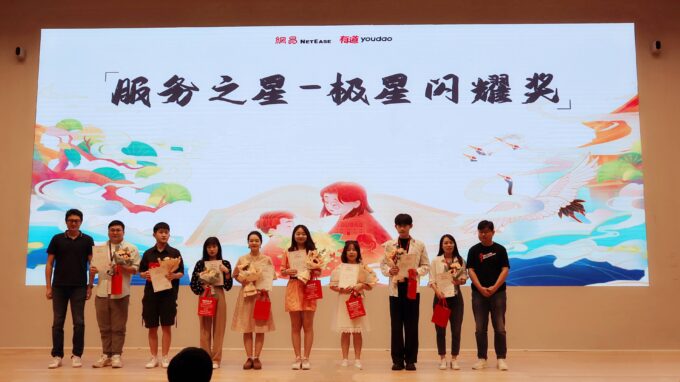 活动尾声,罗媛及各业务板块负责人还为表现优异的有道员工颁发荣誉奖项——以“正气徽章”表彰正直、诚信的有道模范代表;以“极星闪耀奖”肯定用匠心与热爱在教育之路上不断探索的有道文化价值观践行者;以“有道内训师”鼓励专注于自身领域的同时,还积极传播、分享知识与技能给更多有道人的内部培训讲师。