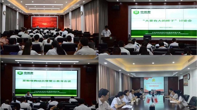 会上,党委书记、总经理张四德同志结合近期党史学习教育心得与如何实现河南分公司“大要有大的样子”等方面,以《回首苍黄百年路 昂首奋进新征程 努力在河南中储粮“做大做强,大有大样”发展上担当作为》为题讲党课,回顾了中国共产党建党100年来的光辉历程,对河南中储粮与焦作直属库如何实现“大要有大的样子”提出自己的思考与见解,并对下一步焦作直属库夯实基础管理水平,实现高质量发展作出安排。辖区中层以上干部及员工代表开展“大要有大的样子”大讨论。大家结合对“大要有大的样子”的思考与认识,联系工作实际就如何实现分管工作与部门“大要有大的样子”开展研讨交流。通过大讨论,进一步统一了思想、凝聚了共识、找准了方向,纷纷表示在今后的工作中严格按照“讲团结、严管理、夯基础、防风险、创一流、做贡献”工作要求与“实干+精细”工作作风,履职尽责、担当作为,为实现河南分公司“大要有大的样子”作出应有贡献。党委书记、总经理张四德同志作夏粮收购动员讲话,要求全体干部员工齐动员、齐上阵,攻坚克难,坚决完成轮换收购及增储任务;纪委书记马振军同志对夏粮收购期间的工作纪律、落实“六个一”与监督执纪工作提出要求,提醒辖区干部员工认真遵守夏粮收购廉洁自律相关规定,坚决杜绝“靠粮吃粮”行为,严肃收购纪律,做到警钟长鸣。