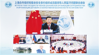 9月17日,国家主席习近平在北京以视频方式出席上海合作组织和集体安全条约组织成员国领导人阿富汗问题联合峰会并发表重要讲话。