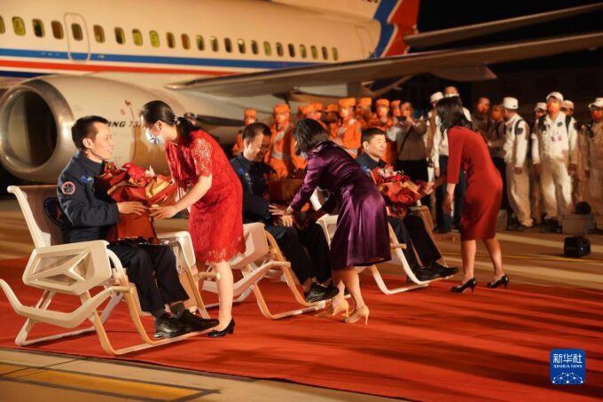 据中国载人航天工程办公室消息,圆满完成神舟十二号载人飞行任务的航天员聂海胜、刘伯明、汤洪波,于2021年9月17日乘坐任务飞机平安抵达北京。