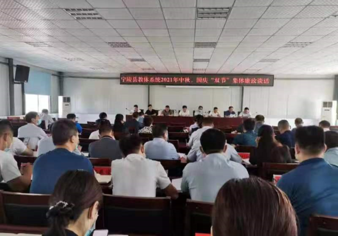 在“双节”来临之际,9月15日,宁陵县教体局在局四楼会议室召开2021年中秋节、国庆节节前集体廉政谈话会议,紧绷廉洁之弦。各乡镇中心校校长、县直各中小学校长、二级机构负责人、县纪委监委派驻教体局纪检监察组组长以及教体局领导班子成员参加了会议。
