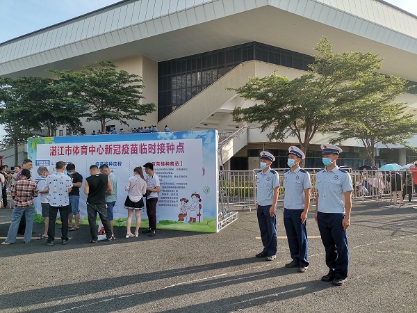 为确保疫苗临时接种点工作安全开展,切实落实为群众办实事,2021年5月29日,赤坎消防救援大队深入湛江市体育中心开展打疫苗现场志愿服务和消防安保工作。