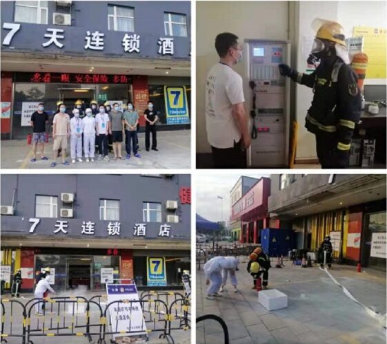为进一步强化队员对辖区涉疫单位、水源道路情况的熟悉掌握,以达到护卫群众生命安全的目的,2021年5月12日下午,赤坎区消防救援大队对涉疫七天连锁酒店开展演练工作。