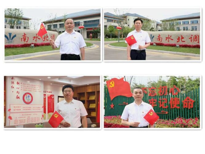 宿迁分公司广大干部职工始终保持一颗红心永向党,坚持以习近平新时代中国特色社会主义思想为指导,深入学习习近平总书记视察江苏和南水北调工程重要讲话指示精神,深入开展党史学习教育活动,牢固树立“四个意识”、自觉坚定“四个自信”、坚决做到“两个维护”,始终做好主责主业不放松,保质保量完成年度调水任务,保障一江清水源源向北。全体员工始终立足本职,砥砺前行,坚定信念,不忘初心,始终保持一种昂扬奋勇向上的工作状态和热情,在“水源红·新心向融”党建品牌的引领下,发扬不辞千辛万苦保调水、不远千山万水履职责、不惧千锤百炼建队伍、不忘千方百计谋发展的“四不四千”实干精神,带动宿迁分公司全体员工奋发向上、奋勇向前,为南水北调事业高质量发展贡献力量,以更加优异的成绩向建党一百周年献礼。百年峥嵘,百年伟业,南水北调,红心向党!