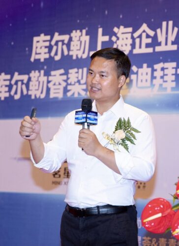 茗星荟创始人、青青恒美技术研究院院长黄小梅在致辞时说,库尔勒是久负盛名的“瓜果之乡”,香梨更有“世界梨后”美誉。库尔勒香梨成功走进迪拜世博会,香飘世界,必将带动库尔勒经济发展,为建设大美新疆添砖加瓦