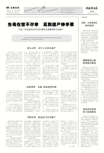 20210924 生母在世不尽孝 见到遗产伸手要 江苏一对兄弟因未对生母尽赡养义务被判决不分遗产