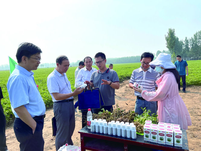 在观摩会现场,种植户常跃丽告诉记者,在2018年的时候,她种植的花生白绢病发病率达50%,2019年开始用“农科1号”做试验,分别在苗期和落花期各打一遍,收花生的时候发现防治率在98%左右。2020年用同样的方式打了一遍,还是3亩地,基本没有病株。今年尽管雨水多、田间湿度大,但花生农田打过“农科1号”后,防治效果还是相当好。