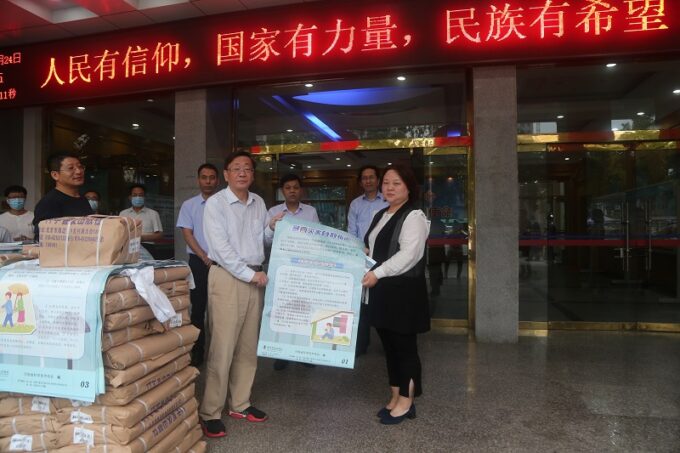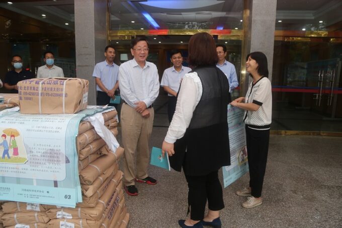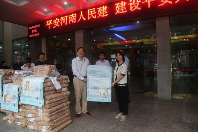 房卫平代表省科协向金水区、管城区赠送防汛应急科普宣传资料