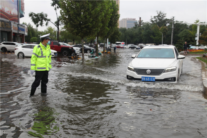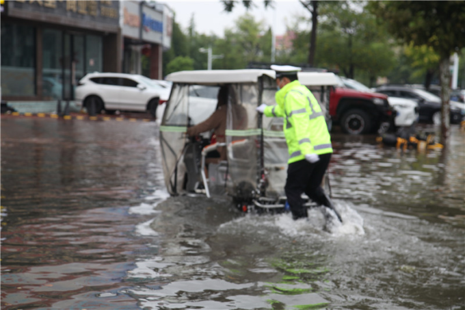 “雨情就是警情,畅通就是责任”。强降雨给市区道路交通带来很大压力,交警支队迅速反应,在重要路口、路段增派警力,加大执勤巡逻力度,强化对易积水重点路段和车流量较大路口的管控力度,在流量大、积水深路段定点、定人、定位增派执勤人员不断提醒车辆驾驶员低速行驶、注意保持车距、禁止超车。加强对高峰时段和重点路段、路口的管控,及时指挥疏导交通,防止发生长时间、大范围的交通拥堵,路面执勤民警、辅警在做好路面管控的同时,积极为受困车辆、群众提供救助,有效避免了道路交通拥堵和交通事故的发生。