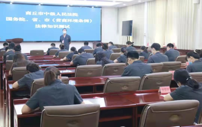 9月24日上午,商丘中院抽取部门业务骨干举行优化营商环境法律知识测试。测试旨在进一步贯彻落实国家和省、市优化营商环境条例(简称“三条例”),配合开展好“三条例”执法检查工作,提升法院干警法治保障营商环境意识,提高优化营商环境理论知识水平。