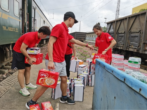7月21日中午,第三批救助物资到达,此时郑州的雨停了。队员们一同下车,协助乘务员将食物和水扛上车厢,继续为乘客发放物资。如今,回想起车厢内经历的点点滴滴,胡羽老师不经感慨:“非常难忘,同学们面对突发状况能够迅速调整自己的情绪,乐观地面对,十分了不起,也很感激同学们积极参与发放物资,没有一句怨言,发挥自己所长,尽自己所能帮助K226次列车上的所有人。”