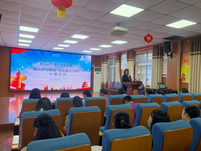 为全面贯彻落实党的教育方针,深入实施素质教育,坚持社会主义办学方向,根据《河南省教育工作领导小组关于深入学习宣传贯彻党的教育方针的通知》(豫教组 发〔2021〕3 号)文件精神,9月24日,驻马店市第二十五小学组织全体教师召开了 “贯彻党的教育方针 凝心聚力育新人”专题会议,全体教职工参加会议。