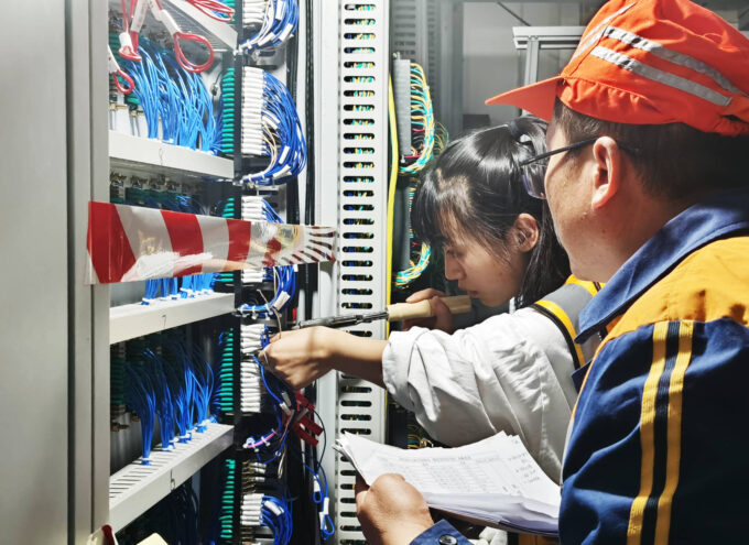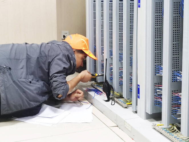 开通施工中技术员调整设备参数(摄影:陈宏庆)