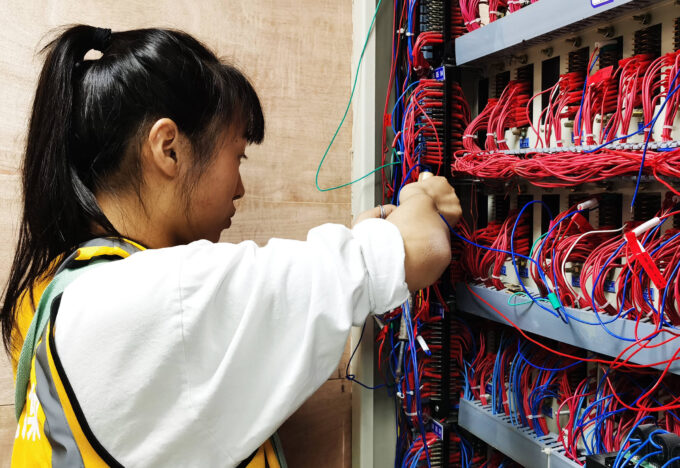 开通施工中室外方向盒配线(摄影:陈宏庆)