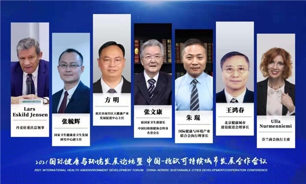 国家卫生部原部长、健康中国50人论坛主任张文康在致辞中表示,健康是人类全面发展的基础,环境是人类生产和生存的物质基础。健康与环境有密切关系,健康与环境是可持续发展的重要内容和条件,也是服务贸易的重要内容。在去年的服贸会上,IHEIA邀请了众多来自世界卫生组织驻华代表处、中国欧盟商会等国际国内机构的代表,发起了“同一个世界,同一个健康——可持续发展2030倡议”,并且将“中西医疗大健康创新中心”等五个国别项目在重庆南岸区、青岛西海岸新区、北京经开区等展开落地合作,这些成果展现了IHEIA在“国际组织—政府—学术机构—商协会—企业”等多方协同合作机制的优势,践行了全球服务贸易联盟着力开辟服务贸易领域国际交流新渠道,搭建全球经贸合作平台,与国际组织、境外商协会共建合作机制,推动国家服务贸易开展更多务实合作的理念。在今年的服贸会上,IHEIA、中国丹麦商会、北京芬兰商会等国际商协会积极呼应全球服务贸易联盟宗旨,发起了“北欧健康城市中国服务贸易联盟”,联盟将通过服贸会平台,促进北欧健康企业、绿色企业在更大范围内,更高水平、更深层次的展开与中国的合作。张文康部长还祝愿重庆南岸区、青岛西海岸新区等地方政府,在国际合作方面取得丰硕成果,力争成为中国与北欧在健康、环境、可持续发展领域的国际合作示范基地。