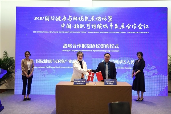 9月6日,2021国际健康与环境发展论坛暨中国-北欧可持续城市发展合作会议,在北京国家会议中心隆重召开。本次论坛是此间举行的2021中国国际服务贸易交易会(简称服贸会)的系列活动之一,由国际健康与环境产业联合会(IHEIA)、丹麦绿色国度和重庆南岸区人民政府、青岛西海岸新区管理委员会联合主办,由中国丹麦商会、北京芬兰商会协办,芬兰国家商务促进局支持,艾赫亚国际咨询承办。在会上,重庆南岸区人民政府代表方明主任与IHEIA代表共同签署了战略合作协议。