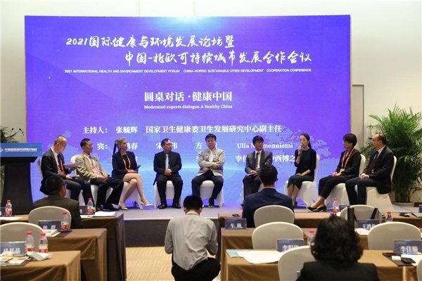 在“健康中国”圆桌对话环节中,国家卫生健康委卫生发展研究中心张毓辉副主任作为对话主持人,与北京健康城市建设促进会理事长王鸿春、医学微视创始人杨超、北京医院主任医师郑志坚、国信医药CEO宋伟、重庆市南岸区大健康产业发展促进中心主任方明、芬兰国家商务促进局医疗健康行业中国区负责人李佳璇 、北京芬兰商会执行主席Ulla Nurmenniemi 、北京中关村医疗器械园副总经理李积伟 、日本介護福祉関連事業協同協会理事長中西博之等围绕健康中国建设、健康城市建设、健康科普、中医传承与创新、中国创新药产业发展、重庆南岸区大健康产业促进、中芬医疗健康产业合作机遇、北京两区建设对医疗器械的机遇、中日康复合作等议题进行探讨。