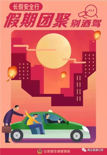 【严查交通违法提醒】节日期间,公安交警部门放弃休假,全员上路,最大限度地将警力、执法装备投入路面,实行路面巡逻与视频巡查相结合的勤务模式,依托商丘高速公路智能卡口、视频监控设备、区间测速和缉查布控系统,集中开展专项整治行动,消除交通违法隐患。即开展夜查酒驾统一行动,将以晚上21时至凌晨6时为重点时段,严查严处酒驾醉驾交通违法犯罪行为;开展重点车辆整治行动,紧盯“两客一危一货一面包车”等重点车辆,严查超速超员、酒驾醉驾、疲劳驾驶、违法占用应急车道行驶、不按规定车道行驶、违法停车、违法倒车、不系安全带等易肇事肇祸的交通违法为重点,提高重点车辆违法发现、预警、拦截、查纠能力水平,集中清剿重点车辆源头隐患;开展对7至9座载客汽车严重违法行为专项整治,在每周五、周日,9月29日至30日、10月5日至7日统一行动日时间,集中严查超员、疲劳驾驶、非法营运等严重交通违法行为,形成高压严管态势。