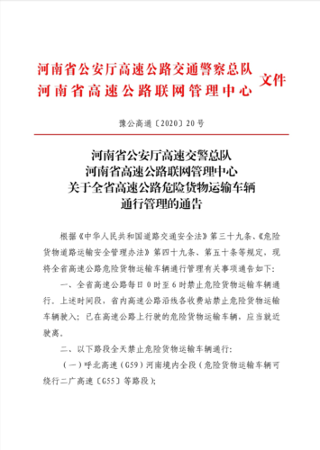 2021年国庆假期(自2021年10月1日0时至10月8日6时),河南高速公路禁止危险货物运输车辆通行,请危险货物运输车辆驾驶人提前规划行车路线。